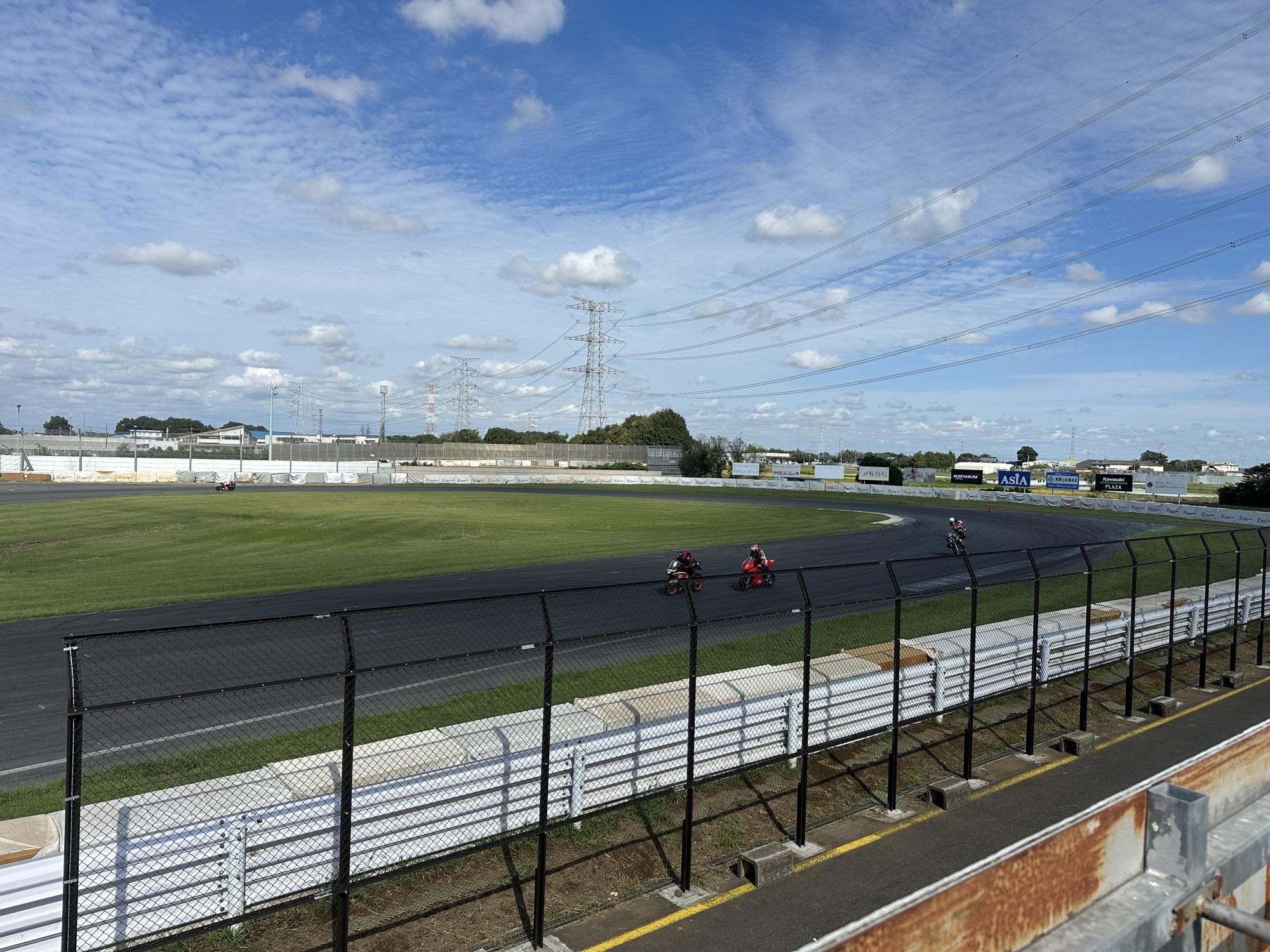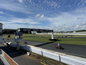 2本目は少しコースにも慣れてきましたがそれでも軽量車両にバンバン抜かれ申し訳ないな~と思う余裕がないほど一生懸命に走っていると目の前に一台のバイクが入ったかと思うと自分より少し早いペースで引っ張ってくれる、先導のラインをトレースするとめちゃくちゃ走りやすい、結局最後まで引率いただきあっという間の15分