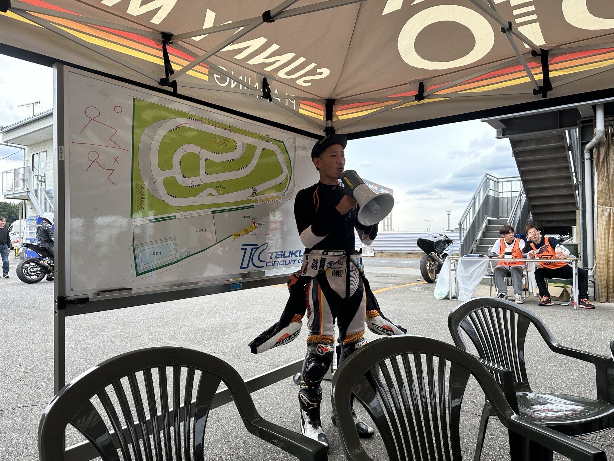 走行会はほぼフルグリッド100名近いライダーが参加されたそうです、小室さんはもちろん豪華なインストラクター陣と和やかな雰囲気のブリーフィング