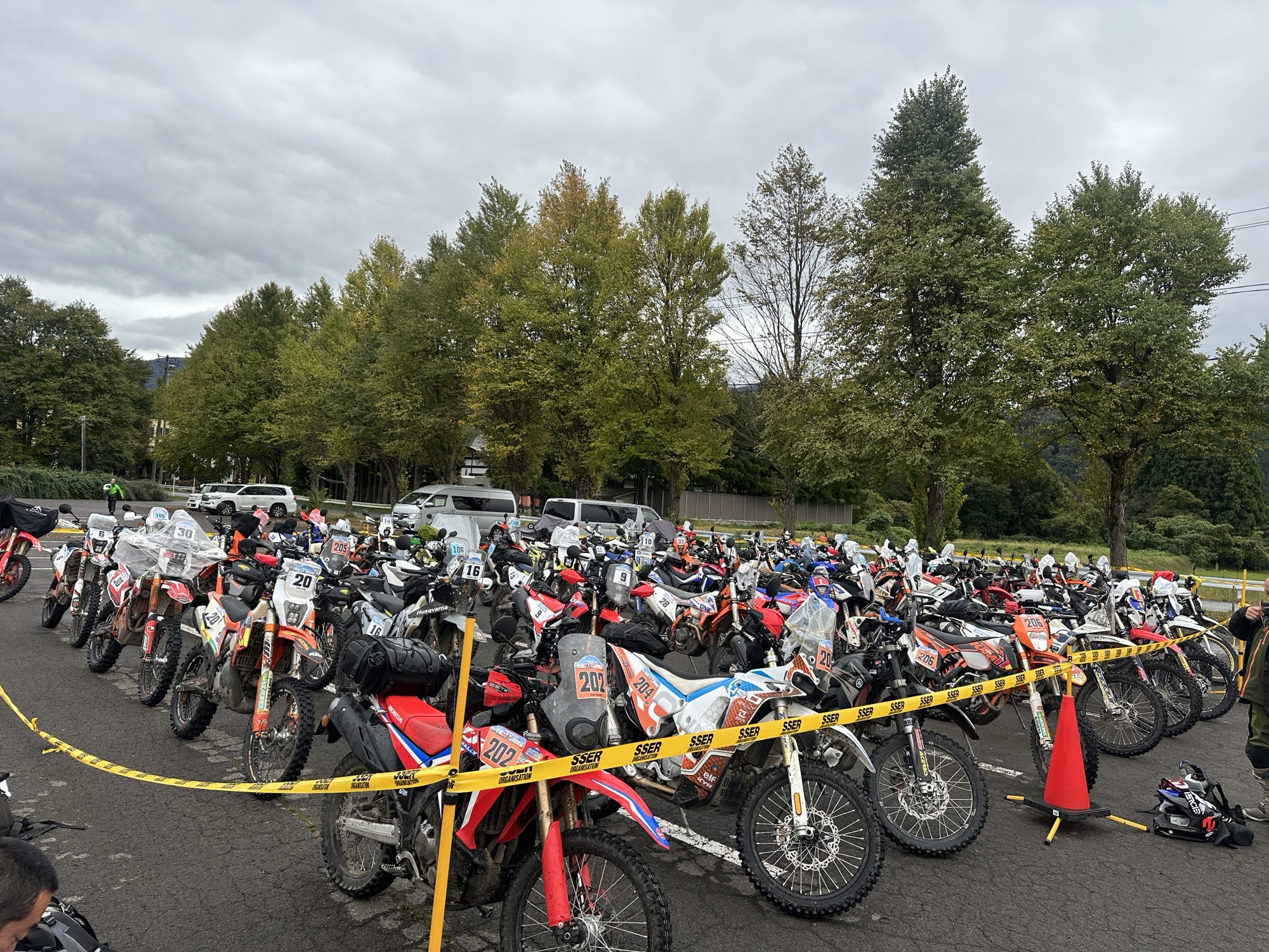 Day 3は終日雨でした。しかも午後からは土砂降り😭SSの2本は玉砂利の多い林道でコーナーで速度を保てず順位は振るいませんでしたがバイク操作少しずつ理解してきました。オーバーランは一度もありませんでしたが車体に対してコーナー速度上げすぎて何度かフロントタイヤ持っていかれましたがHP2程は機敏でなくても十分に対応できるバイクです。まだ結論出すのは早いと思いますがHP2がフラットツインのメガエンデューロならR12G/Sはフラットツインのトレールバイクという感じの印象エンジンや電子制御が素晴らしいので乗っていて圧倒的に疲れない