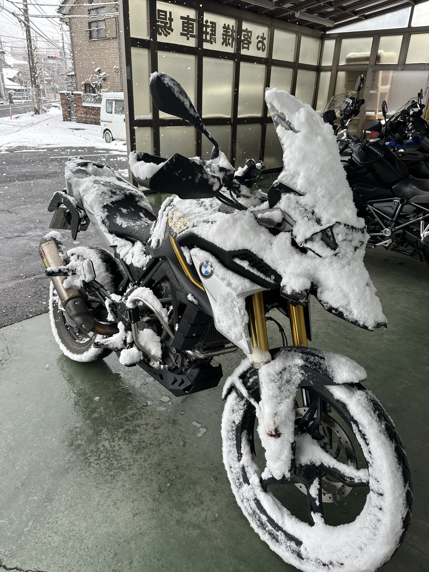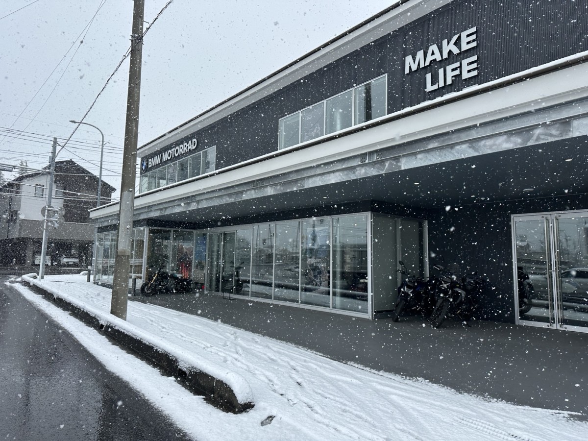 雪降りしきる中バイクで来店されるお客様!!